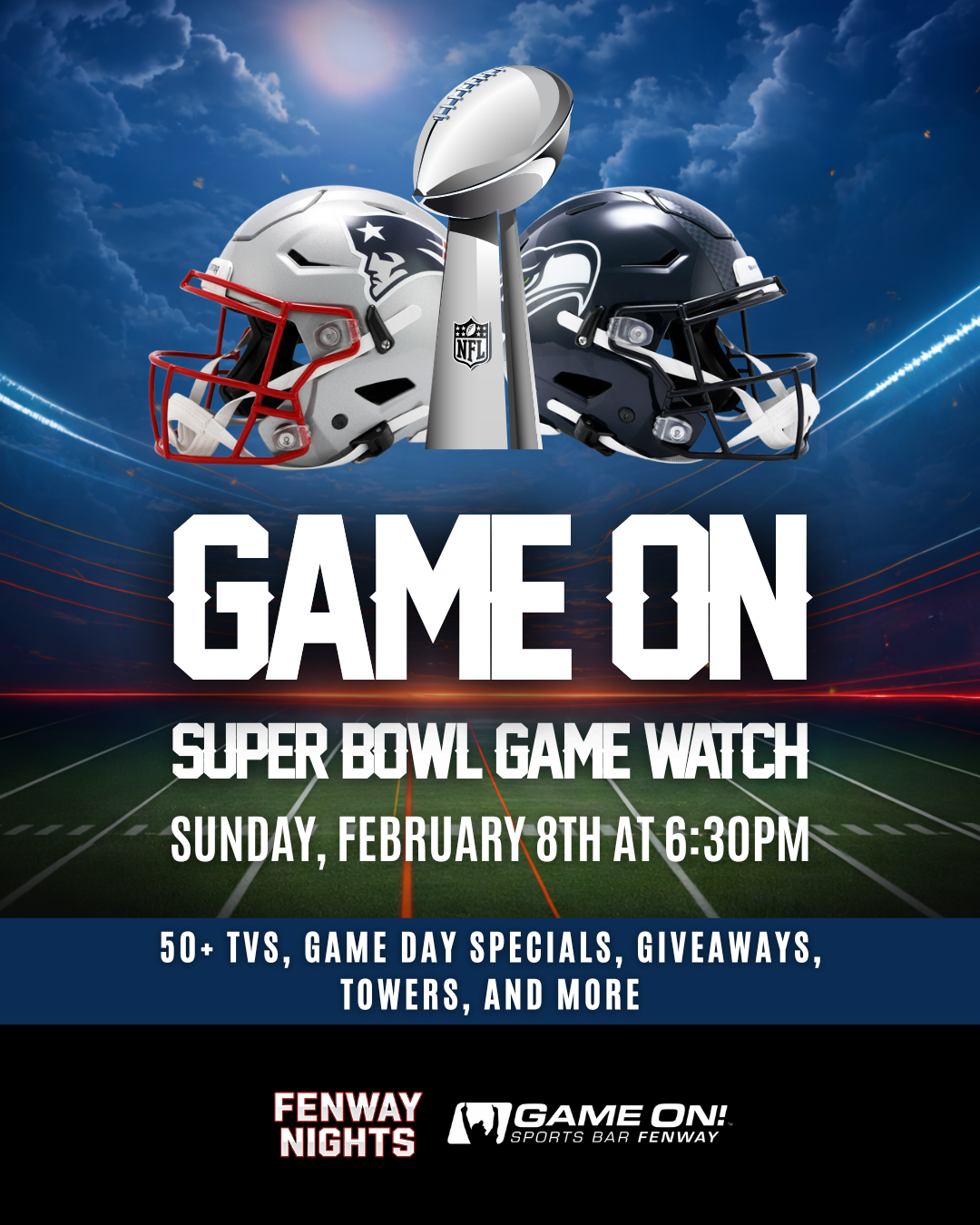 Plenty of places will show the game. Game On! Fenway turns Super Bowl Sunday into an ultimate sports entertainment experience fueled by pure Fenway energy.